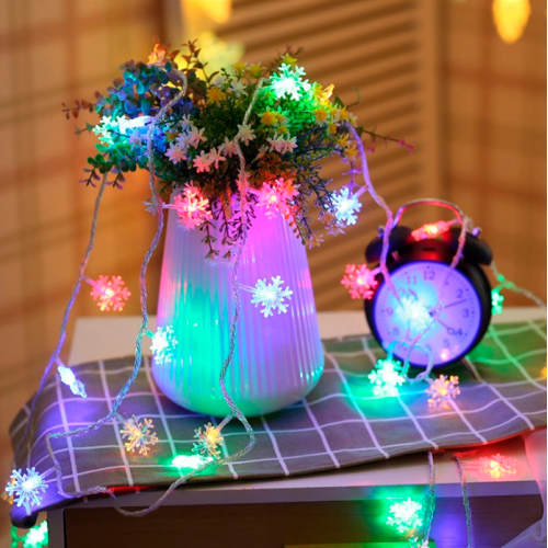 Кожна сніжинка виготовлена з прозорого пластику, через який пробивається м’яке світло LED-лампочок, створюючи ефект кришталевого сяйва. Гірлянда чудово підходить для декорування ялинки, вікон, полиць, дзеркал, фотозон чи святкового столу. Завдяки живленню від батарейок ви можете прикрасити будь-яке місце — навіть там, де немає розеток.
