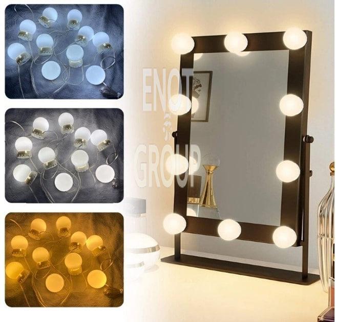 Світлодіодна підсвітка для дзеркала 10 ламп 3 режими яскравості та кольору USB липучки в комплекті