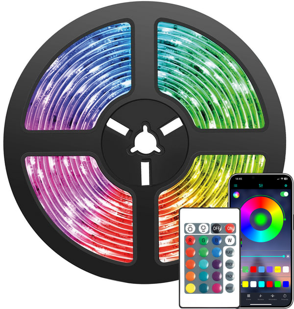 Світлодіодна стрічка має широку палітру RGB-кольорів і дозволяє регулювати яскравість, обирати режими миготіння або плавних переходів.