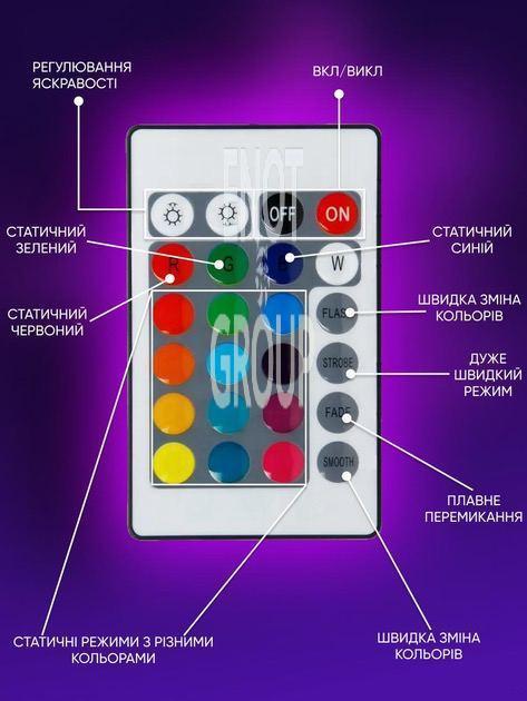 - Зручне керування: Пульт дозволяє дистанційно регулювати яскравість, змінювати кольори та вмикати різні режими світла.