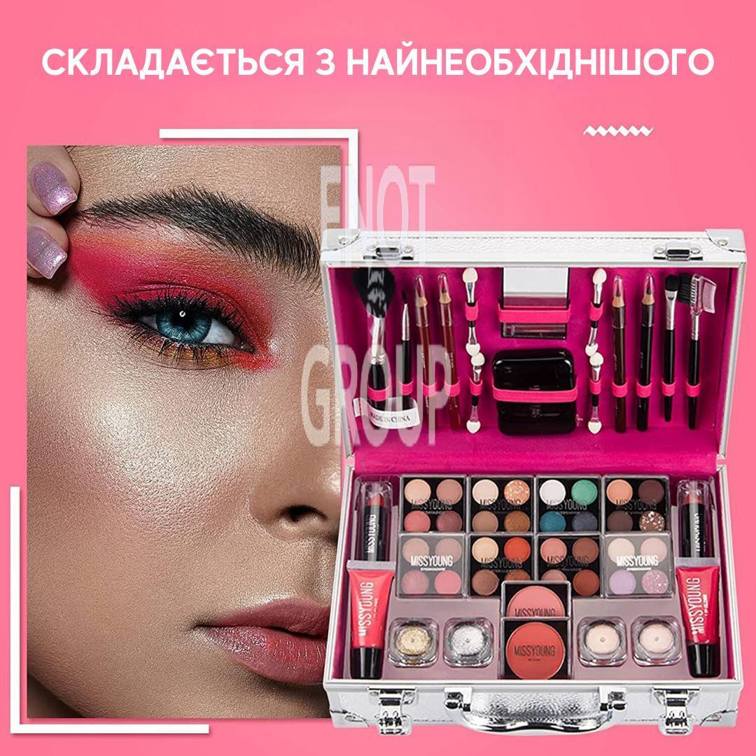 - Все в одному наборі: Немає потреби купувати додаткові засоби – у валізі є все необхідне для повного макіяжу.