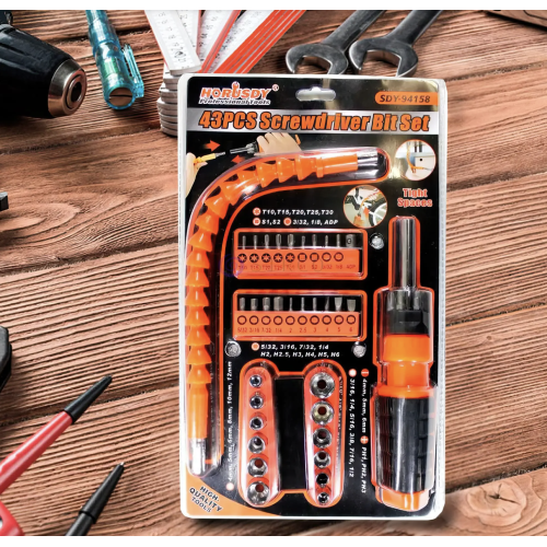 Вікрутка з набором біт та головок у блістері на 43 предмети – універсальний набір для кожного майстра