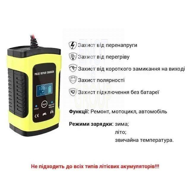 - Використання для заряджання мотоциклетних та інших 12V батарей