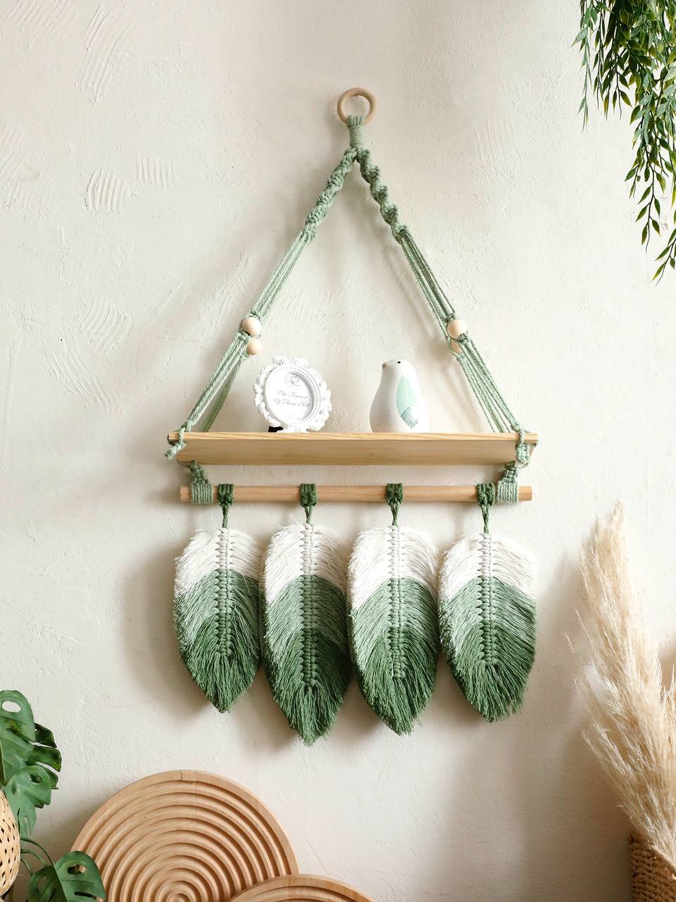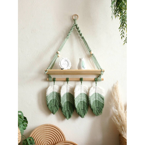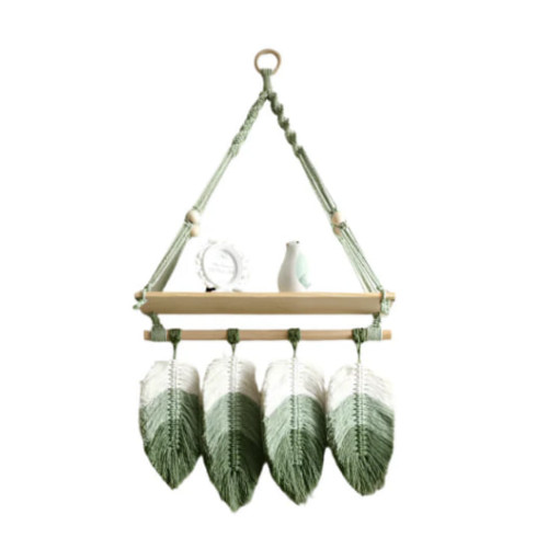Створіть затишний та стильний інтер’єр з нашою зеленою підвісною настінною полицею макраме. Вона поєднує функціональність та декоративність, стаючи центральним акцентом будь-якої кімнати.