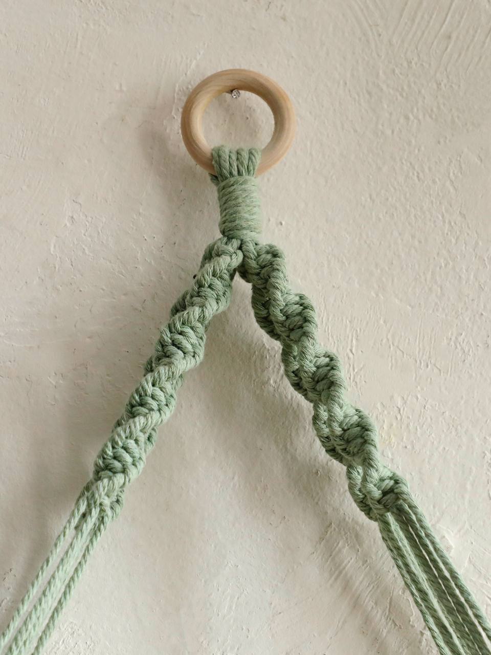 Зелена підвісна настінна полиця макраме еко декор та органайзер для сучасного інтер’єру