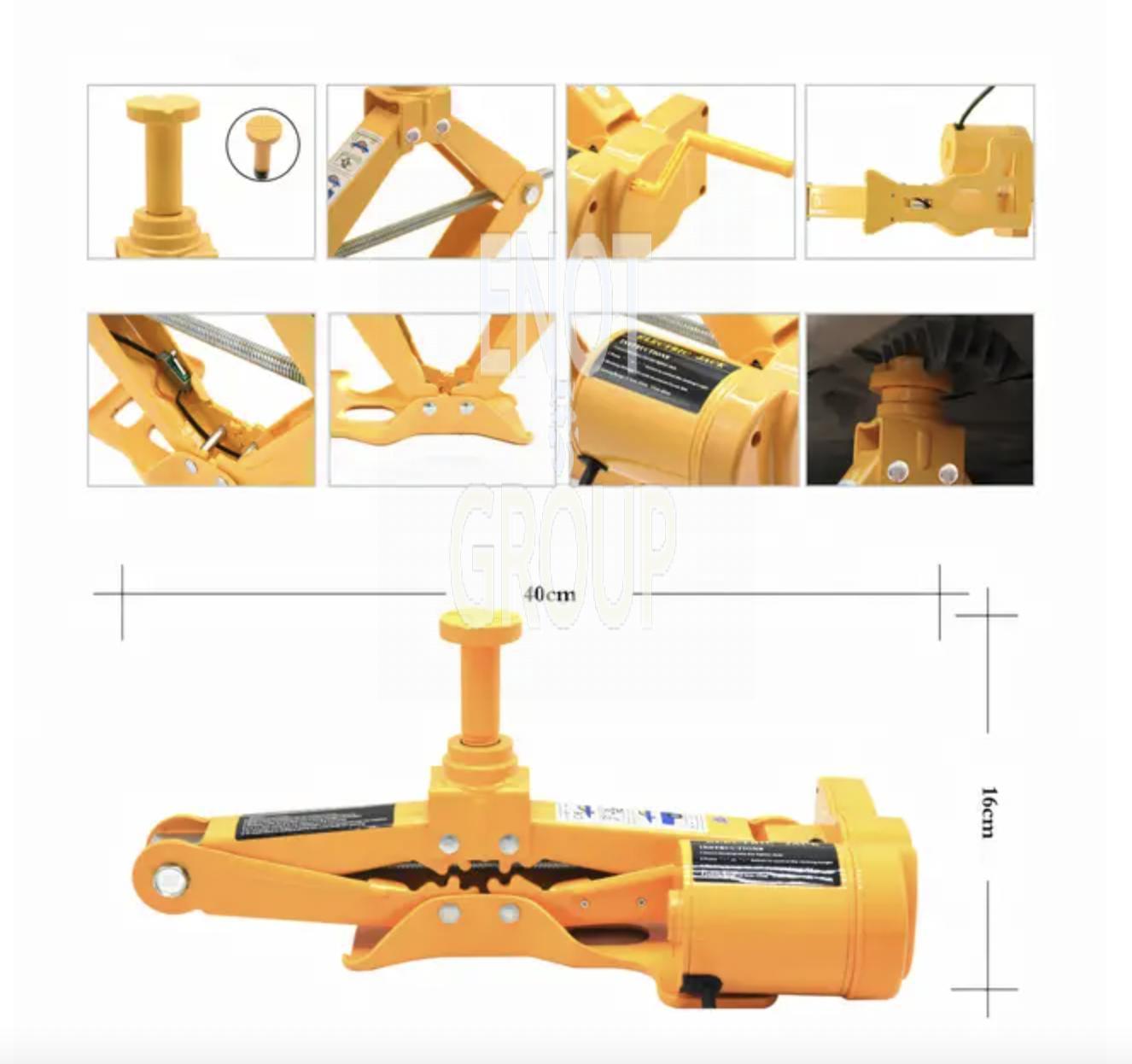 - Електродомкрат: Швидко піднімає автомобіль для заміни коліс або ремонту, з максимальним навантаженням для легкових автомобілів та позашляховиків.